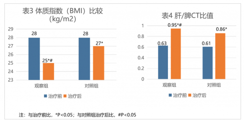 强肝胶囊治疗非酒精性脂肪肝合并高脂血症疗效确切,安全性高 两组患者治疗后BMI和肝/脾CT比值均明显改善(P<0.05),观察组的改善水平明显优于对照组(P<0.05)。